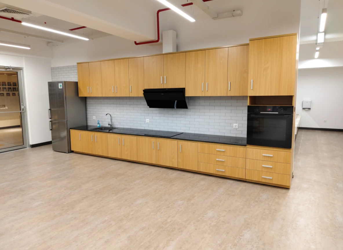Recognizing the importance of practical life skills and communal dining, a spacious and fully-equipped communal kitchen/pantry has been installed.